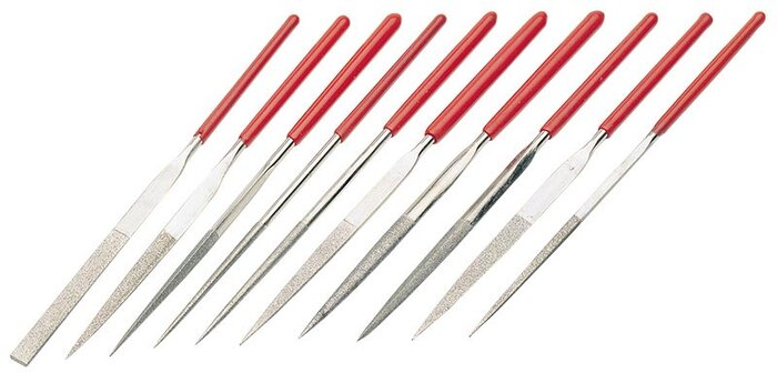 Diamond files are well suited for working with carbide or hardened steel but can also be used on ceramic materials or glass.
